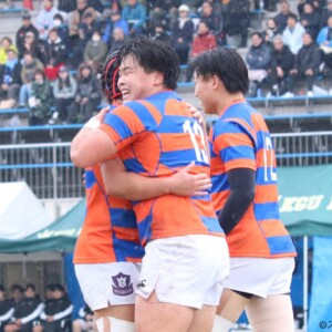 日大FW(フォワード)に圧倒される形で失点してしまった前半を修正したい後半。しかし、三度ドライビングモールでトライを奪われ27-31と逆転を許す。なんとか試合を手繰り寄せたい法大は後半26分CTB根塚洸のラインブレイクからWTB(ウイング)井上拓(社3)にパスを繋ぎトライ。34-32で再逆転する。同30分には呉のゲインからSH(スクラムハーフ)中村翔(経3)がトライを奪い突き放す。このままノーサイドを迎えるかに思われたが同35分に山下憲がシンビン(10分間の一時退場)となり、数的不利を強いられる。だが、懸命にタックルを続けリードを守り切り、辛くも法大が勝利を掴み取った。