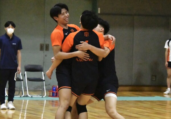 5連敗で迎えた大正大戦。ともに開幕から全敗同士の対決となった。試合は1番手の手塚、2番手の青山がともにストレート勝ちを収め、リードを奪う。続いて3番手として登場したのは髙取。第1ゲームを奪われ、今季未勝利の不調を引きずっているかに見えたが、その後の3ゲームを連取して逆転勝ち。待望の今季未勝利を収めた。3連勝で早くも王手をかけた法大は、この試合でもダブルスで青山・盛武ペアを送り出す。しかし、日体大戦の勝利が嘘のように連携がかみ合わない場面が続き、まさかのストレート負けを喫してしまった。3勝1敗なおも王手をかけている法大は、シングルス4番手で今季初出場の松山佳樹(法2)を起用。最初の2セットを連取した松山は、その後の2ゲームを奪われフルゲームへと持ち込まれるも、最終ゲームで何とか相手を突き放して勝利。松山は1部リーグ初勝利を挙げた。今季初出場の松山の奮闘もあり、大正大を4-1で下した法大。今季初勝利で弾みをつけ、最終日に待つ筑波大との一戦へと臨む。