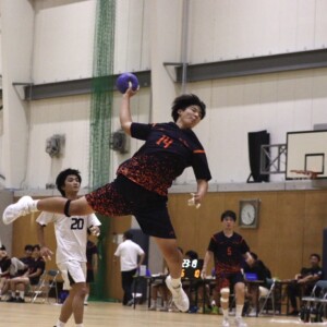 第8戦は順天堂大学。法大は岩﨑琢未(スポ3)、布田航(経4)と早々に得点し勢いのあるスタートを切る。開始3分、石田季里(経4)もゴールをし法大3-1順天大と2点差に。その後は法大リードの一進一退で気を抜けない戦いが続く。9分には相手に7mスローを許してしまい失点。だが速攻を防いだりパスミスから守ったりとGK山口隼和(社4)が活躍を見せる。そして岩﨑、渡邊桂也(経3)らが得点を重ねながら試合が進み法大がリードした状態で前半は終了。(法大19-18順天大)