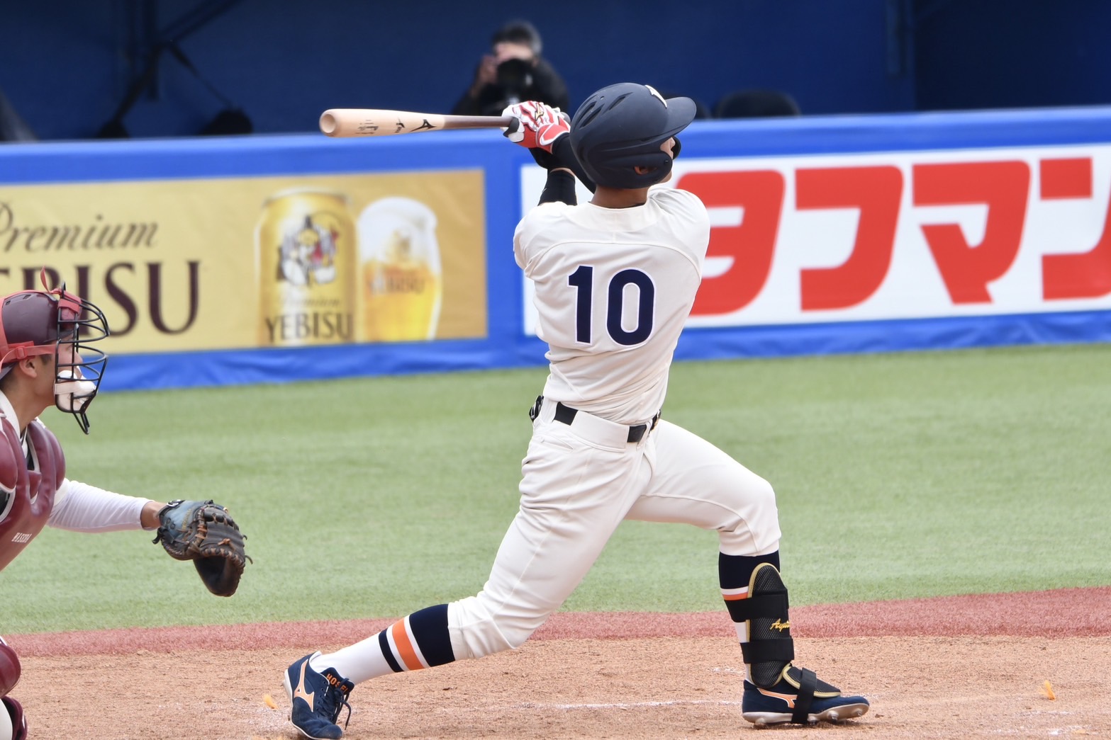 最終回の反撃へいい流れを作りたい9回表は、昨日先発の小森勇凛が登板するも2者連続の四球と制球を乱し、ピンチを作る。続く7番・石郷岡大成(4年=早稲田実業)を右飛に打ち取るもその間に進塁を許し、1死二三塁とされると、8番・吉田瑞樹(4年=浦和学院)を申告敬遠で満塁策をとる。ここで打席には代打の岡西佑弥(3年=智辯和歌山)。中犠飛を打たれ痛い1失点。ここで断ち切りたいところだったが、続く1番・尾瀬にも内野安打を打たれさらに1点を追加され7対2と突き放される。