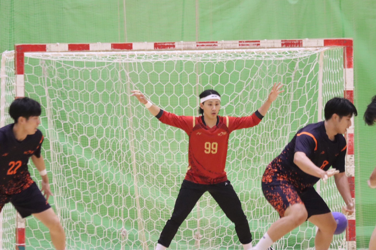 前戦の勝利で優勝を決め中迎える最終戦。相手は春季リーグ1位の青山学院大学。法大は普段とは異なったメンバー中心の戦いとなるが昨季引き分けに終わったリベンジを果たしたいところだ。試合は開始から法大のミスが相次ぎ相手に流れを渡してしまうとそこから少しずつ点差を離され10ー14と4点追いかける形で前半を終える。しかし、後半からミスを修正して実力を発揮し始めると相次いで連続得点が生まれ相手を圧倒して試合終了。33ー24で勝利し、リーグ戦最終戦を勝利で締めくくって見せた。