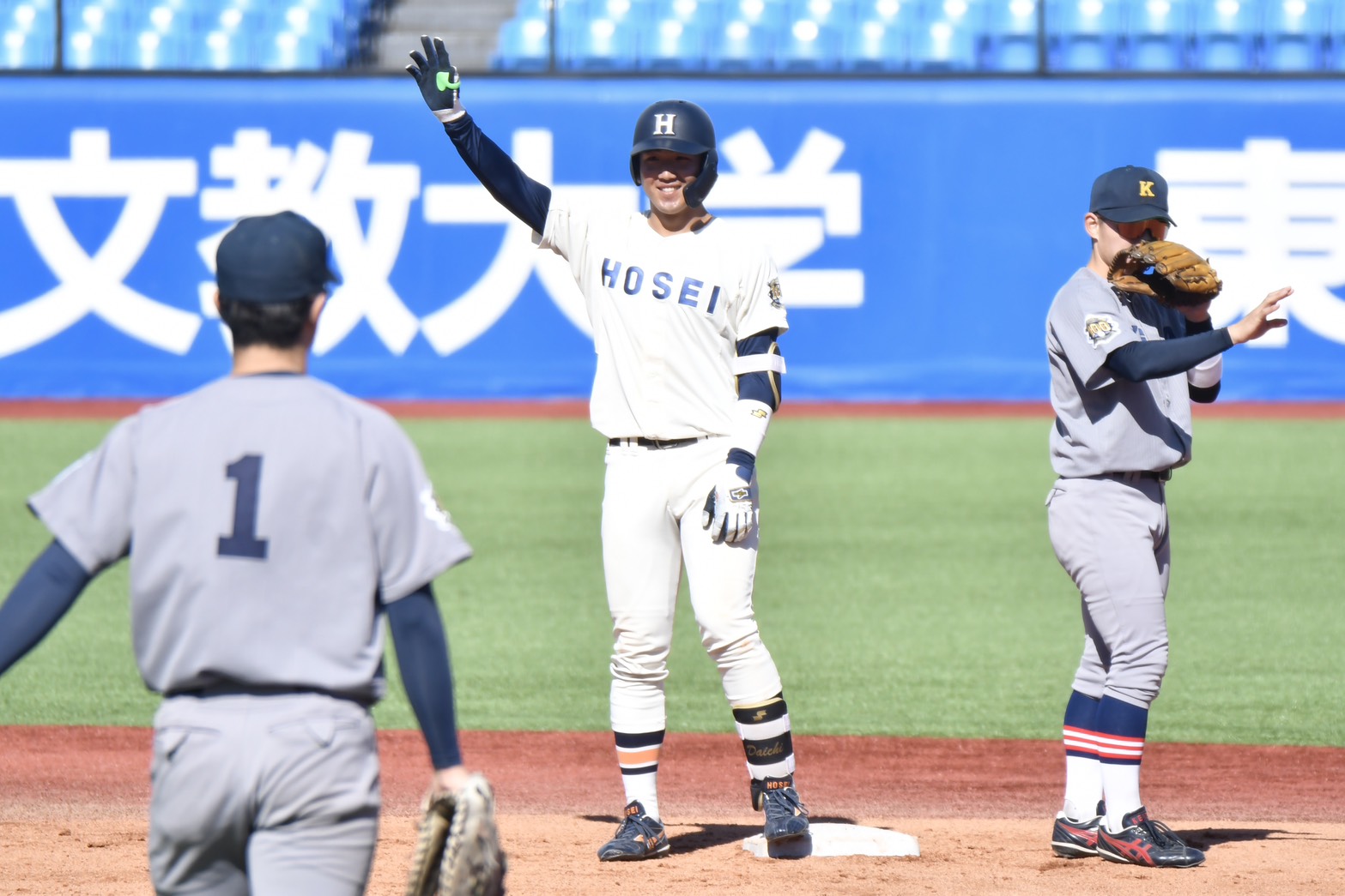法大の攻撃は、9番・大高が三遊間への安打で出塁すると1番・豊田の送りバンドで1死二塁とチャンスを作る。続く2番・小川の右翼線への二塁適時打で1点を追加する。その後、1死二塁のチャンスでは追加点を得れず0-2で後半戦へ。