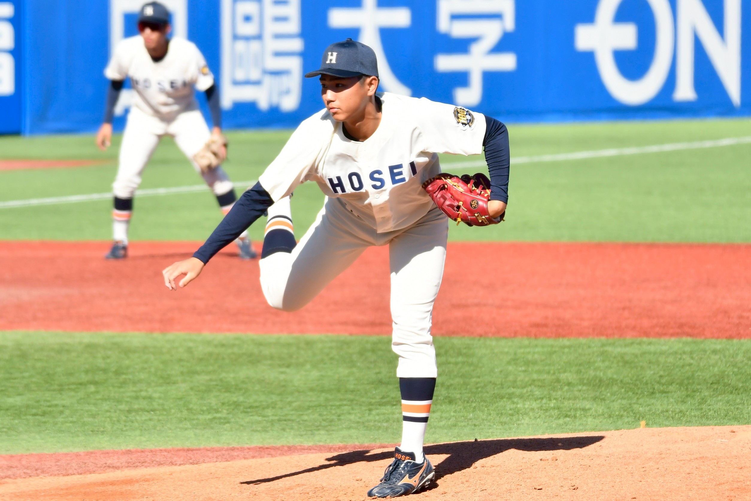 7回表、先頭の市橋慶祐(2年=小野)に左前安打を打たれ、続く一宮の内野ゴロの間に進塁し、1死二塁に。その後、2死から代打・清原勝児(1年=慶応)が四球で出塁し、2死一、二塁のピンチを招くが9番の代打・山本海(1年=慶応湘南藤沢)を三振に抑え、この回も槙野が粘り勝つ。その裏、法大は8番からの打順を三者凡退に抑えられる。