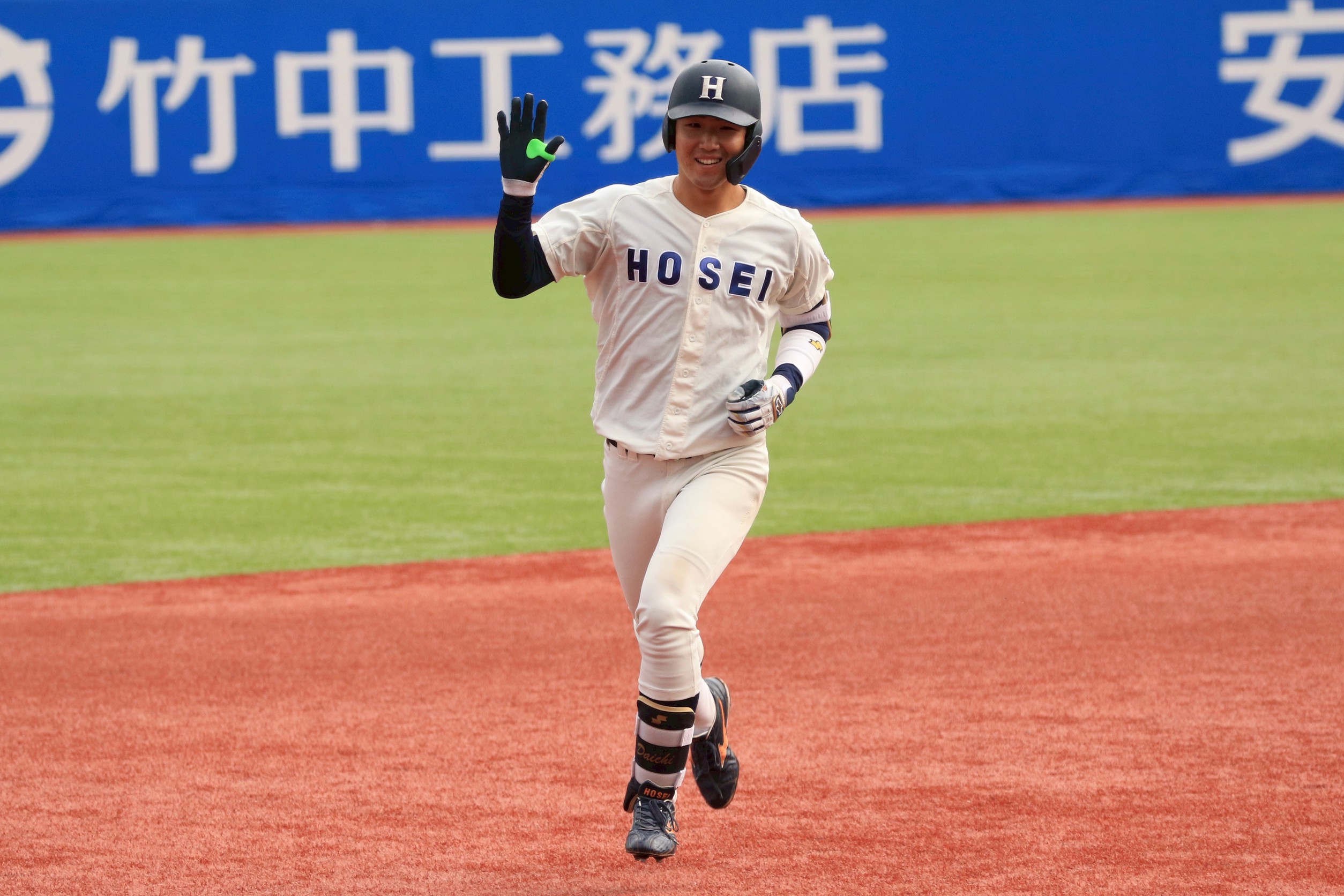 4回表には、死球を出すもその後を打ち取り無失点。法大の攻撃は、5番・小川大地(営2=大阪桐蔭)の神宮初となる左へのソロ本塁打が飛び出し、同点に。