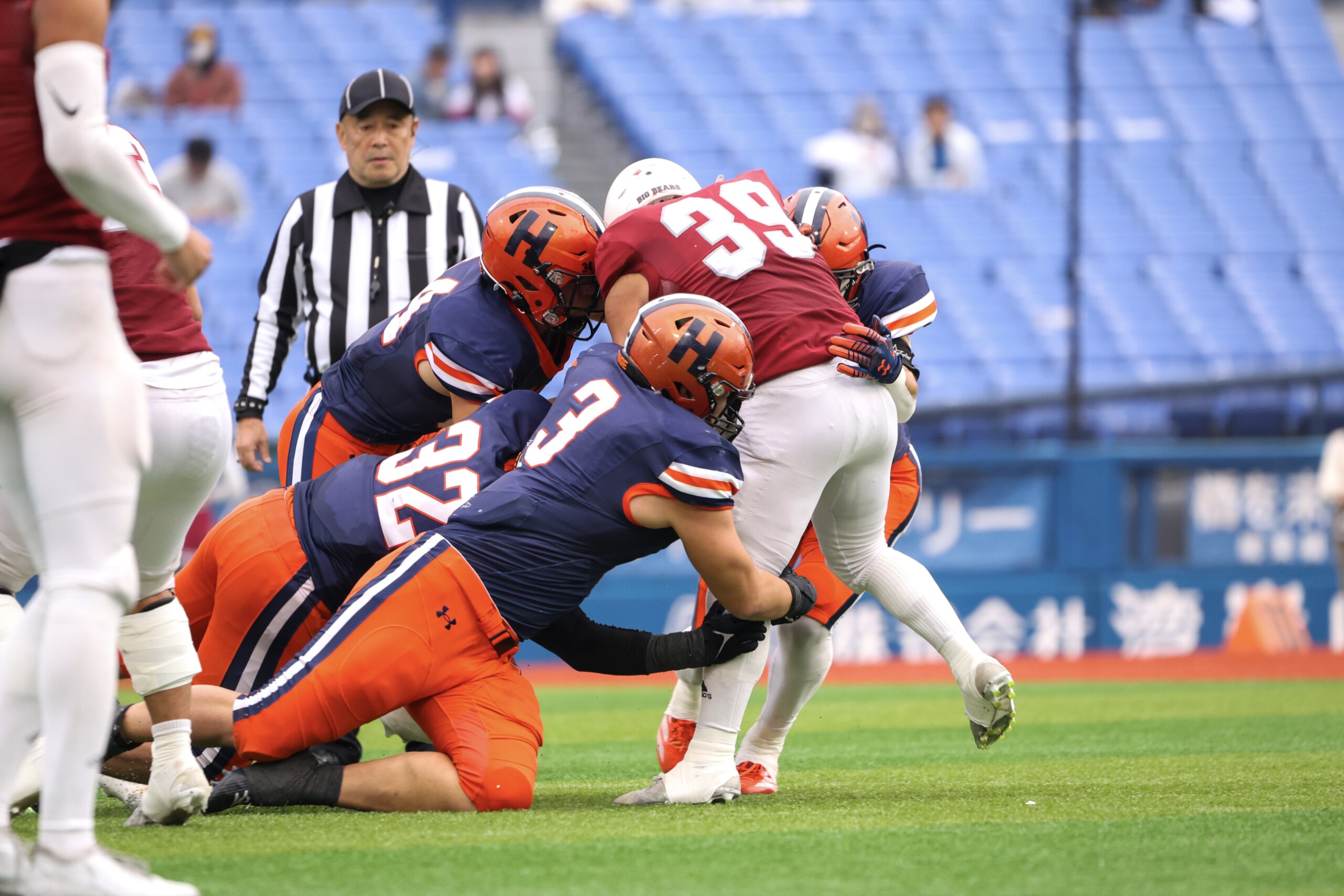 関東リーグ最終戦は、ここまで全勝の早大と対戦。勝利すれば逆転での関東王者となる一戦だったが、終始早大に主導権を握られる苦しい展開に。最後までTDを奪うことが出来ず、3-31で敗戦を喫した。この結果をもって、関東3位で全日本大学選手権へと進むこととなった。