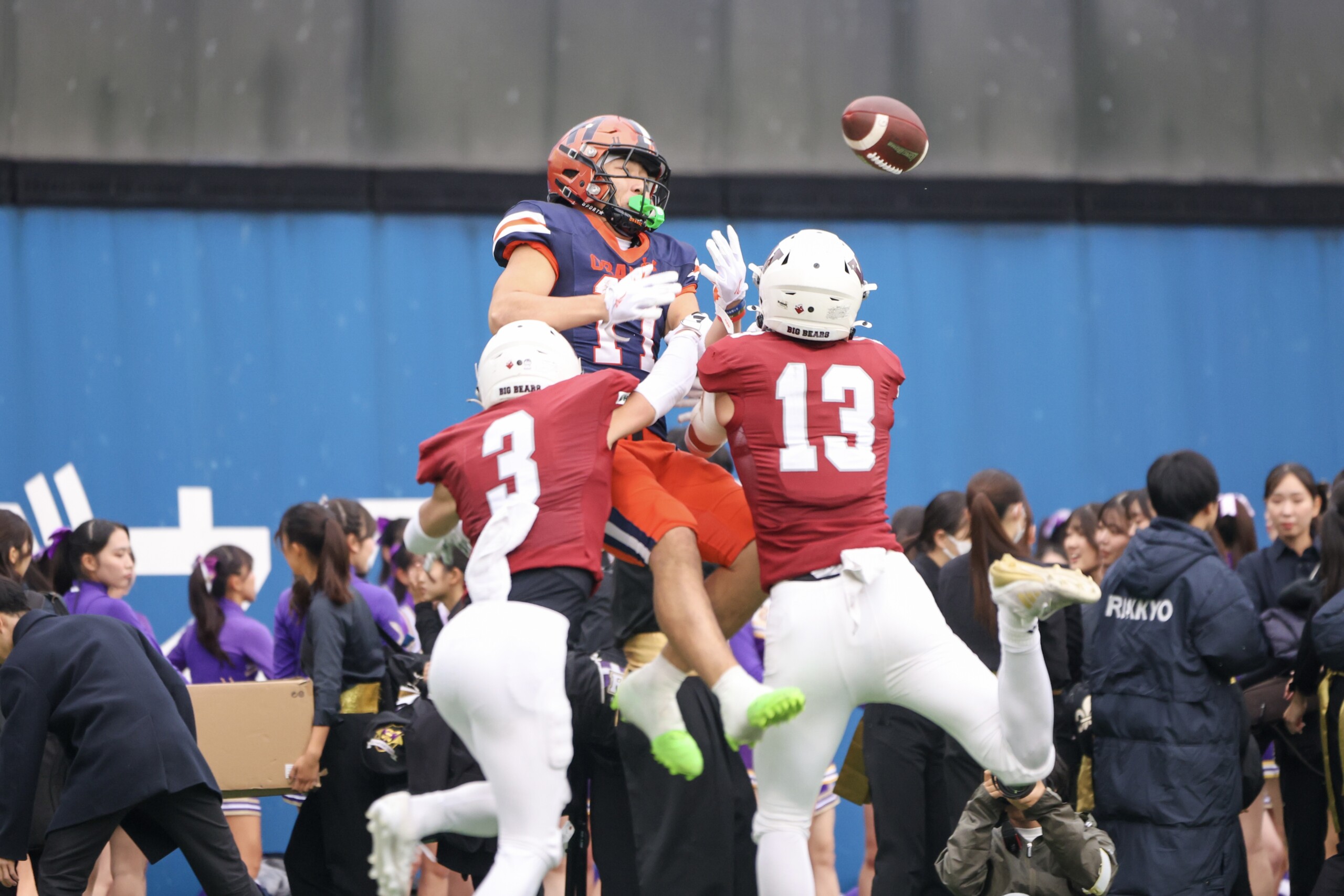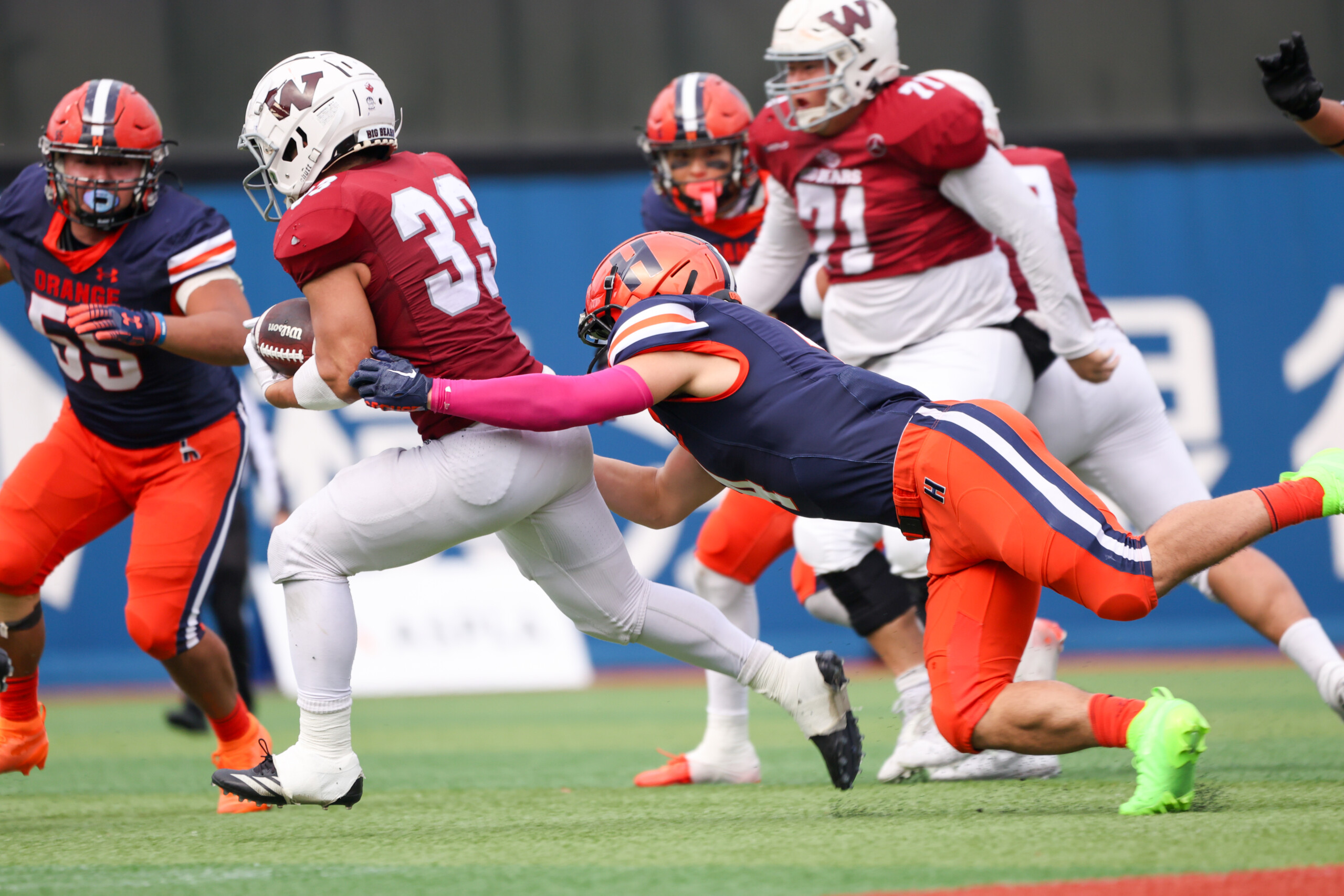 関東リーグ最終戦は、ここまで全勝の早大と対戦。勝利すれば逆転での関東王者となる一戦だったが、終始早大に主導権を握られる苦しい展開に。最後までTDを奪うことが出来ず、3-31で敗戦を喫した。この結果をもって、関東3位で全日本大学選手権へと進むこととなった。