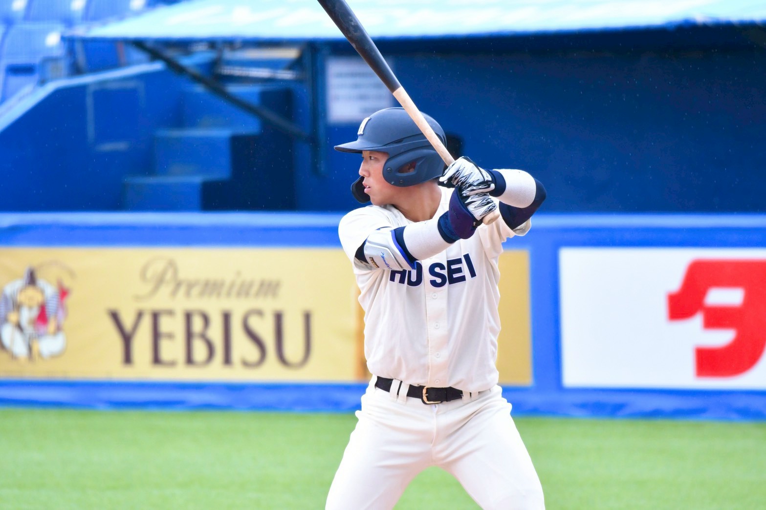 明治のリリーフの菱川(一輝、明大4年=花巻東)選手が、自分が対戦した中で1番きつかったです。本当にストレートの強さ、そして変化球のキレだったり精度だったりコントロールというのが、他のピッチャーよりやっぱ抜けてるなと思って。やっぱりリリーフなんで、ほぼ1打席しか回ってこない状態で、結果を残すというのはちょっと難しかったなと思ってます。