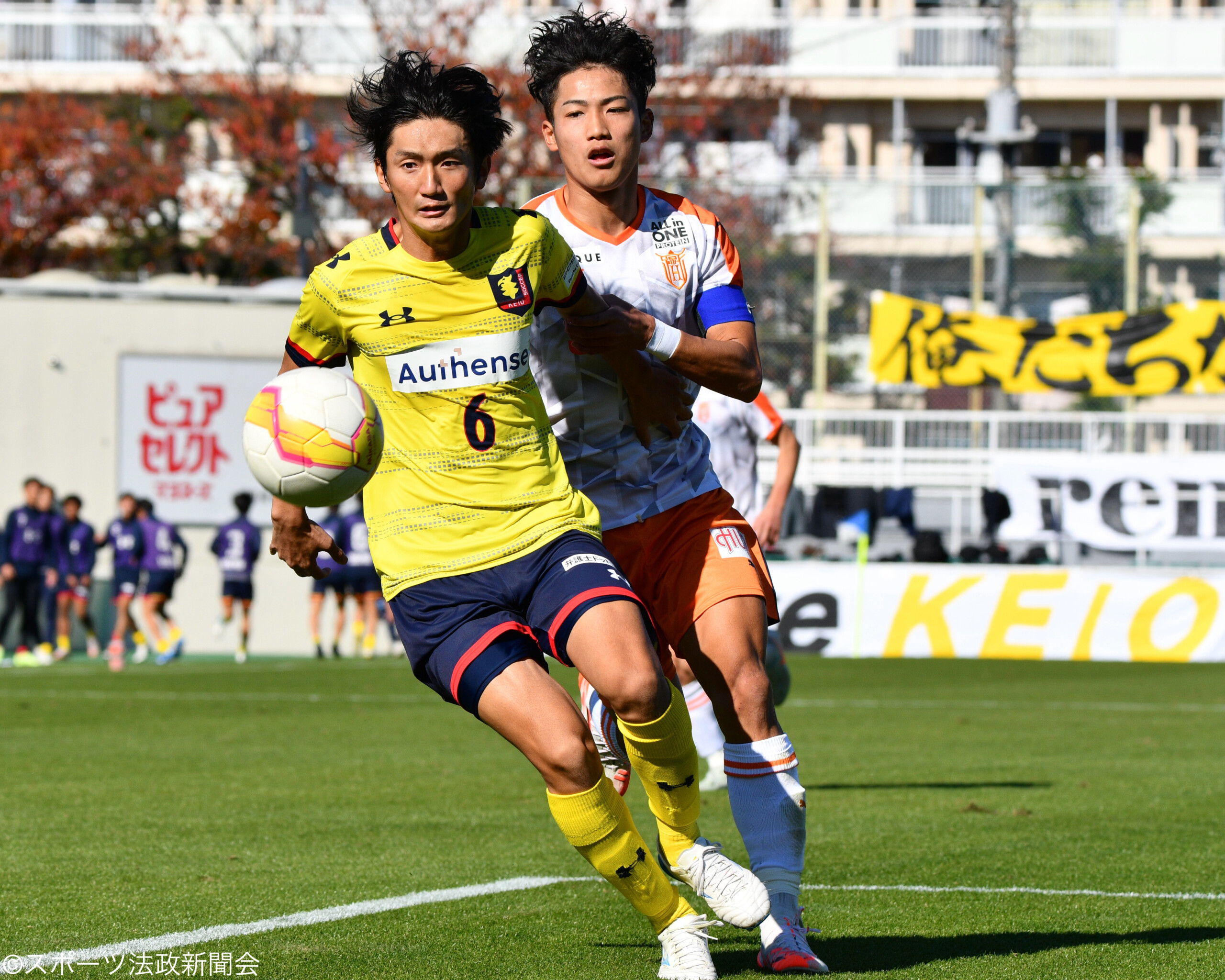 点差を広げた法大だったが、相手も負けじと細かいパスワークを使いながら、サイド攻撃を中心に攻め込んでくる。しかし、主将の日髙華杜(経4= 大津 ・清水エスパルス内定)を中心としたDF陣が、粘り強い守備でゴールを割らせない。
