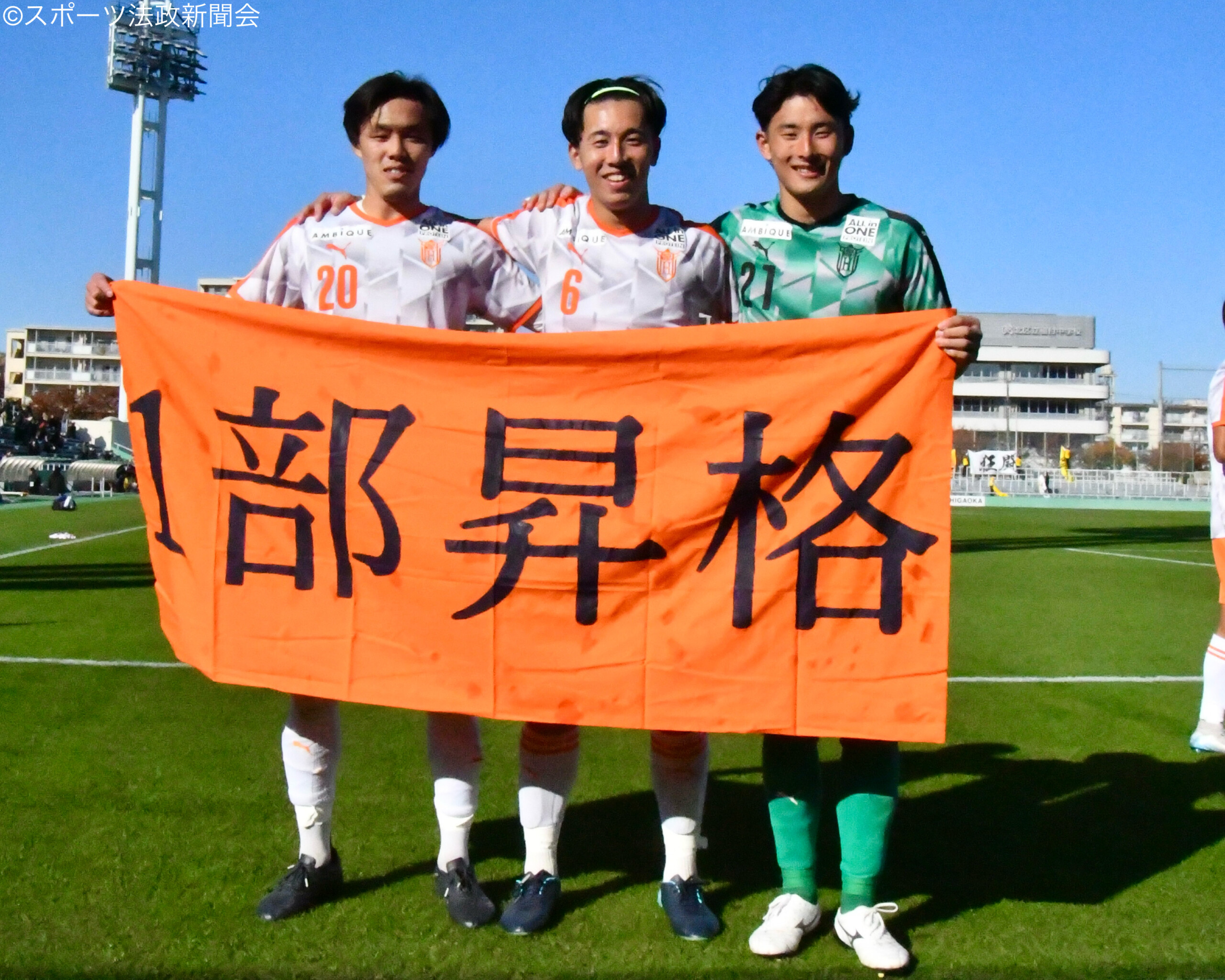 見事3年ぶりに1部リーグへの復帰を果たし、4年生の最後の試合を勝利で飾ることができた。来シーズン、大学サッカー最高峰の舞台で、法大サッカー部がどのようなプレーを見せてくれるのか、期待せずにはいられない。(上杉拓未)