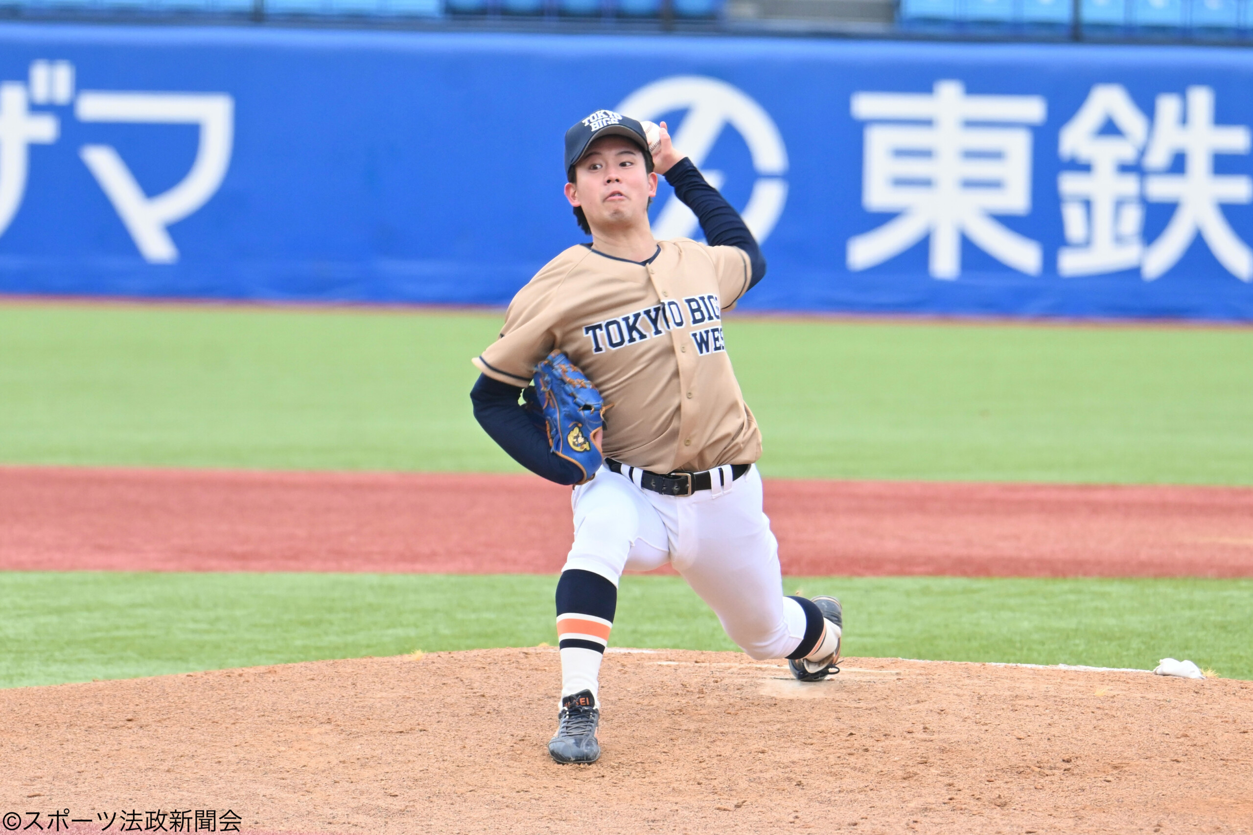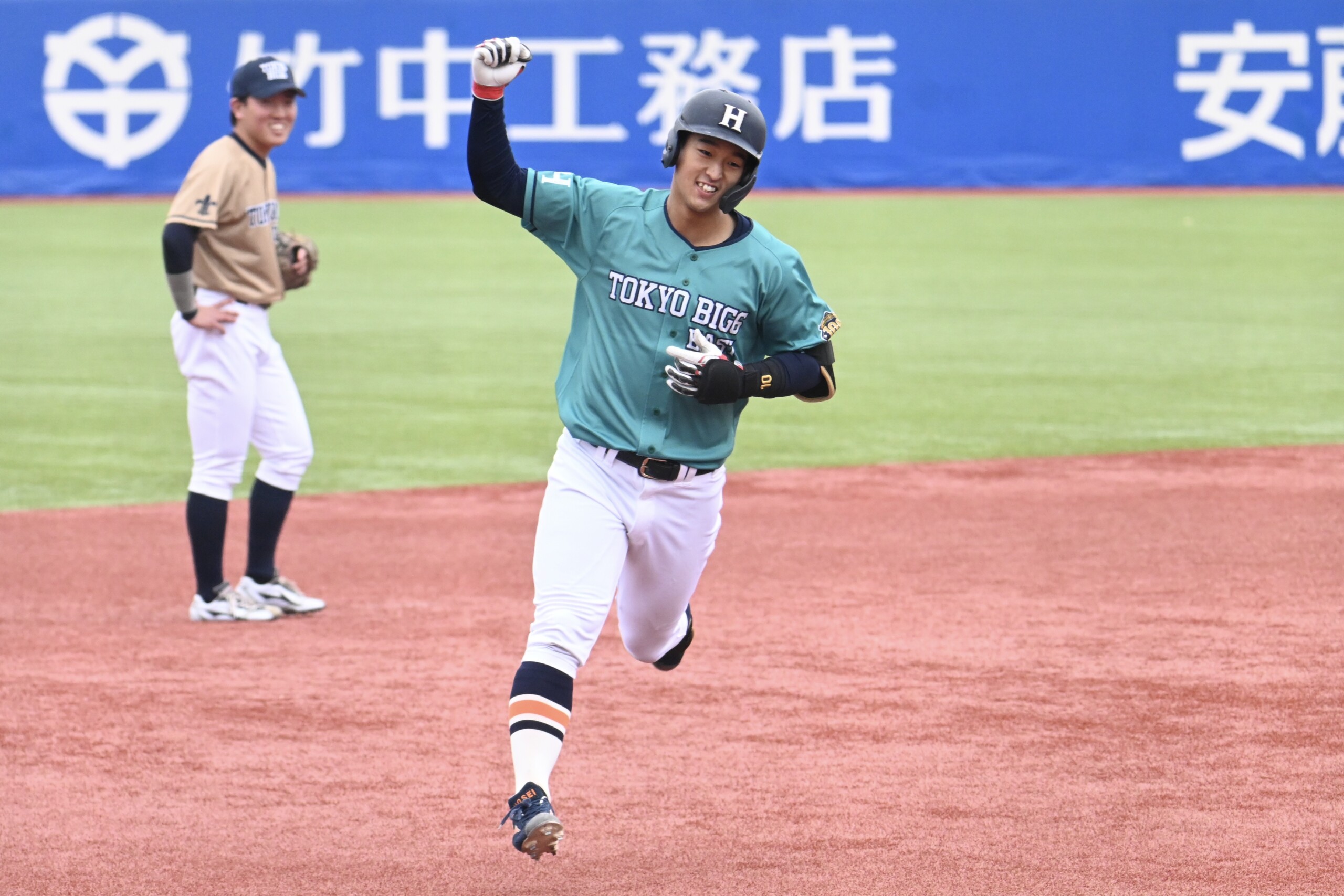 2回表、チームWestは変わった外丸東眞(慶大4年=前橋育英)に対し2死一、三塁の好機を作るも無得点。チームEastはこちらも変わった小畠一心(立大4年=智辯学園)の前に6番・片山が技ありの安打で出塁すると後続も続き無死二、三塁に。石郷岡大成(早大4年=早稲田実業)のセーフティースクイズ失敗などで2死となるも、1番・木本の右前適時打で2点を追加。