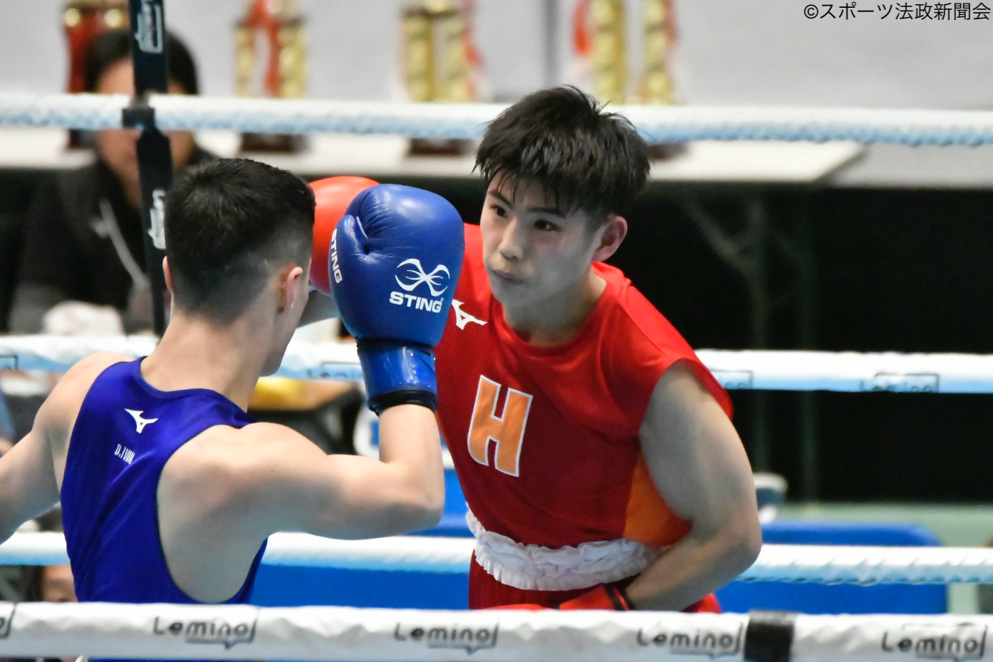 ライト級・尾上仁勇(法2=高松工芸)の初戦は今春のリーグ戦でも対戦し、その時は5-0の判定勝ちを収めた山崎湊(拓大2年=福島)。試合は序盤から着実にポイントを取りつつ、3Rにはダウンも奪うなど、終始尾上が自分のペースで試合を進め、リーグ戦同様にユナニマス・デシジョンで勝利。2日後の2回戦の相手は昨年の同大会でフェザー級3位の大園丈太郎(東洋大4年=鹿児島城西)。試合は強敵相手に1Rからリングを背負い相手の攻撃を多く浴びる展開に。3Rではストレートをヒットさせるなど意地を見せるも、今大会ライト級3位となった実力者に完封され、2回戦で惜しくも敗退となった。