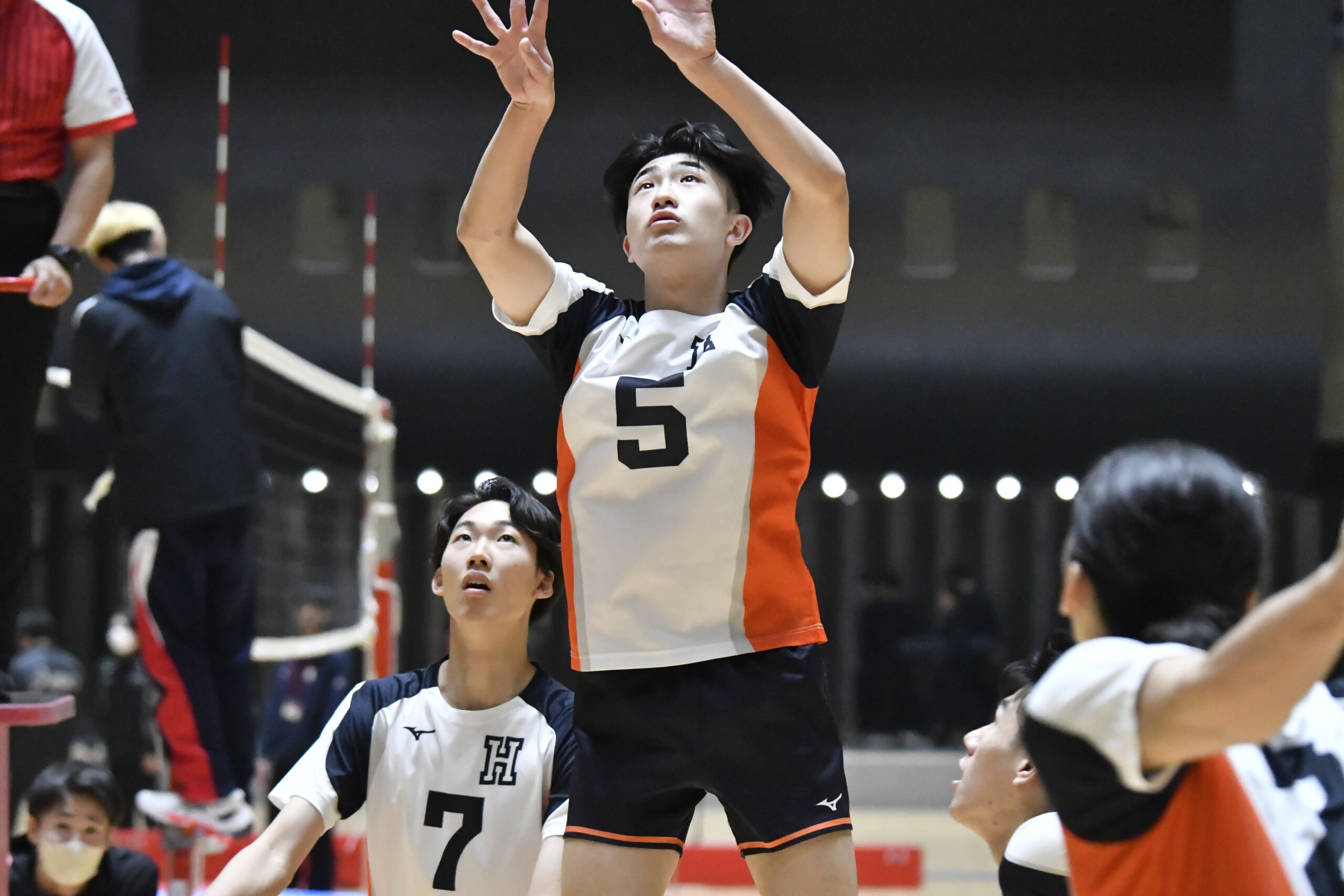 第1セット序盤、WS高橋慶帆(営4)のブロックが決まり幸先の良いスタートを切る。しかし京産大の連続得点により相手に一歩先をいかれたまま互いに点を取り合う展開が続く。17-17で高橋の強烈なスパイクが決まりリードを奪うと、そのまま得点力の差を見せつけ25-22で第1セットを先取した。