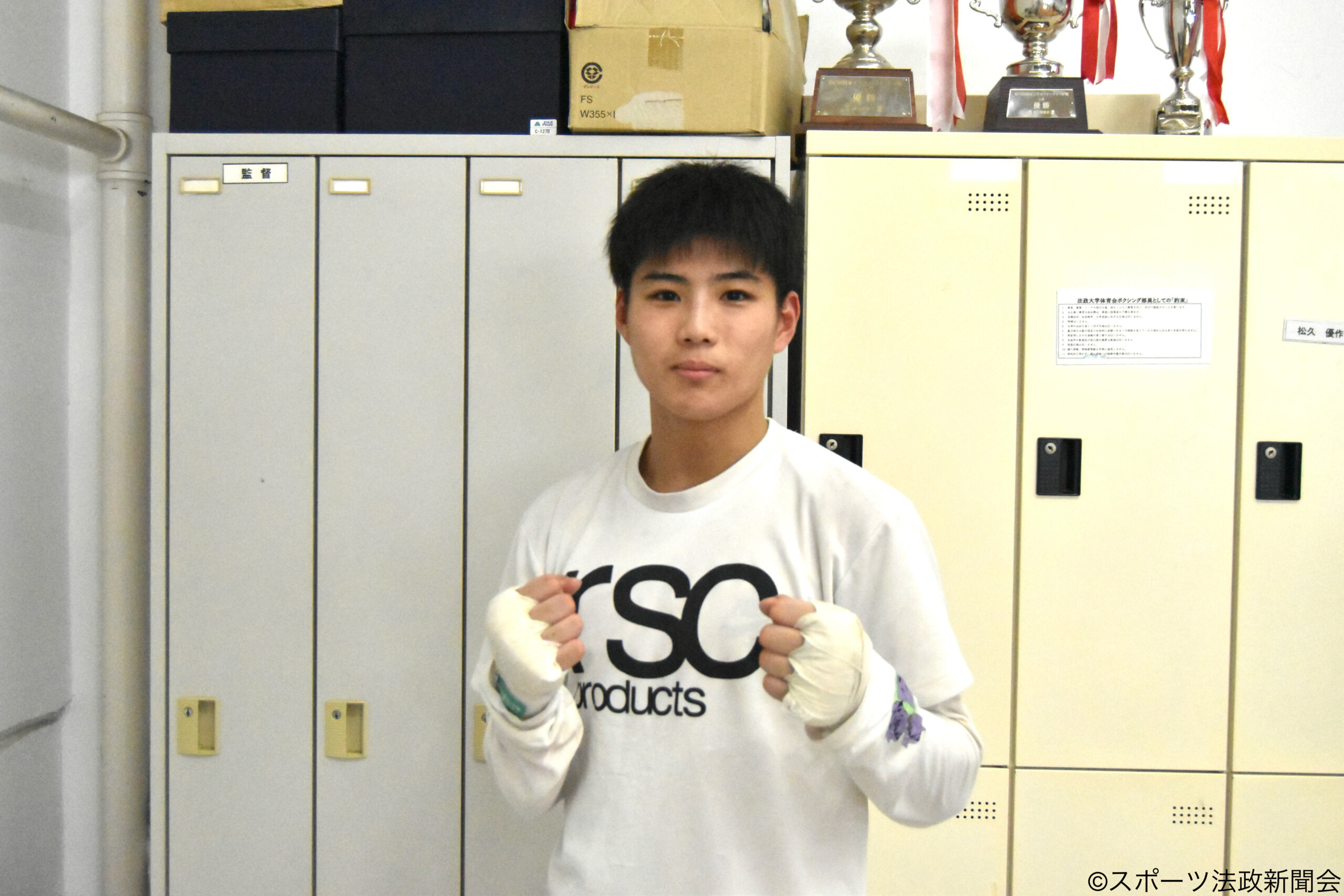 小中学生の時は空手をやっていて、高校からボクシングに移って。高校ボクシングは高校3年の時にインターハイで優勝して理想通りの高校生活でした。大学きてからはやってやるぞという気持ちでいましたが、大学のデビュー戦で負けてしまって、やっぱりそこで1、2年全然勝てなくて大学ボクシングの厳しさということもわかりましたし、逆にそれをどう乗り越えるのかということをこの4年間では学ぶことができました。自分にとってはすごく良い経験になりました。