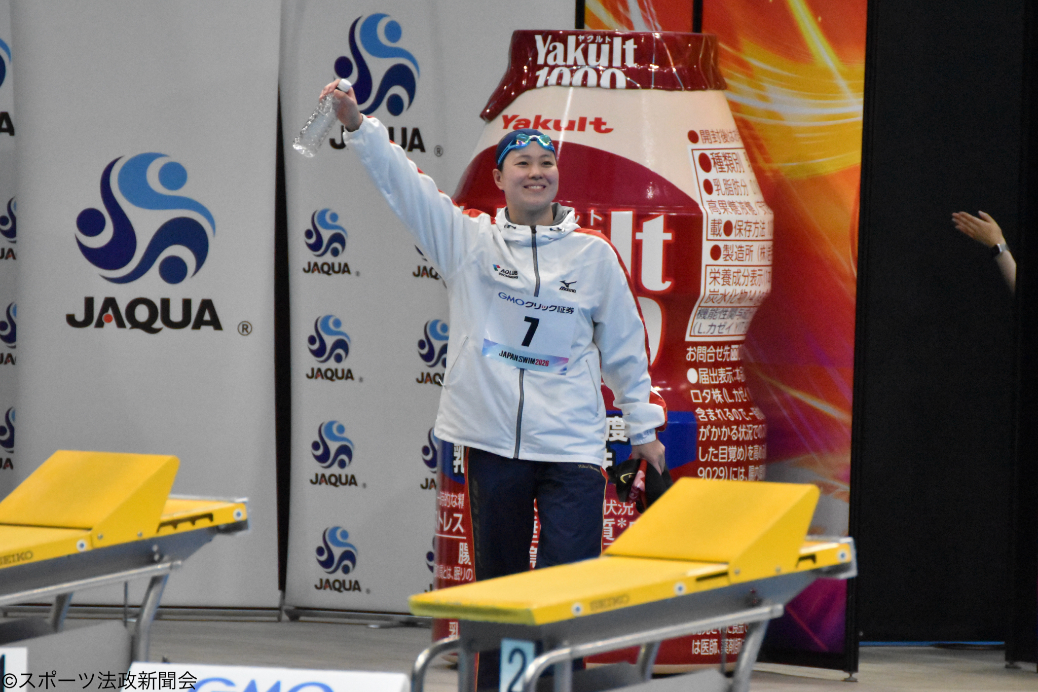 予選のタイムは去年の方が速いですがB決勝で、今年は(A決勝への)ラインが緩かったので、ラッキーだったと思いますが、決勝では去年よりタイムを上げることができましたけど、とりあえずこの種目(100m背泳ぎ)でA決勝に上がることができたことがすごく嬉しいです。