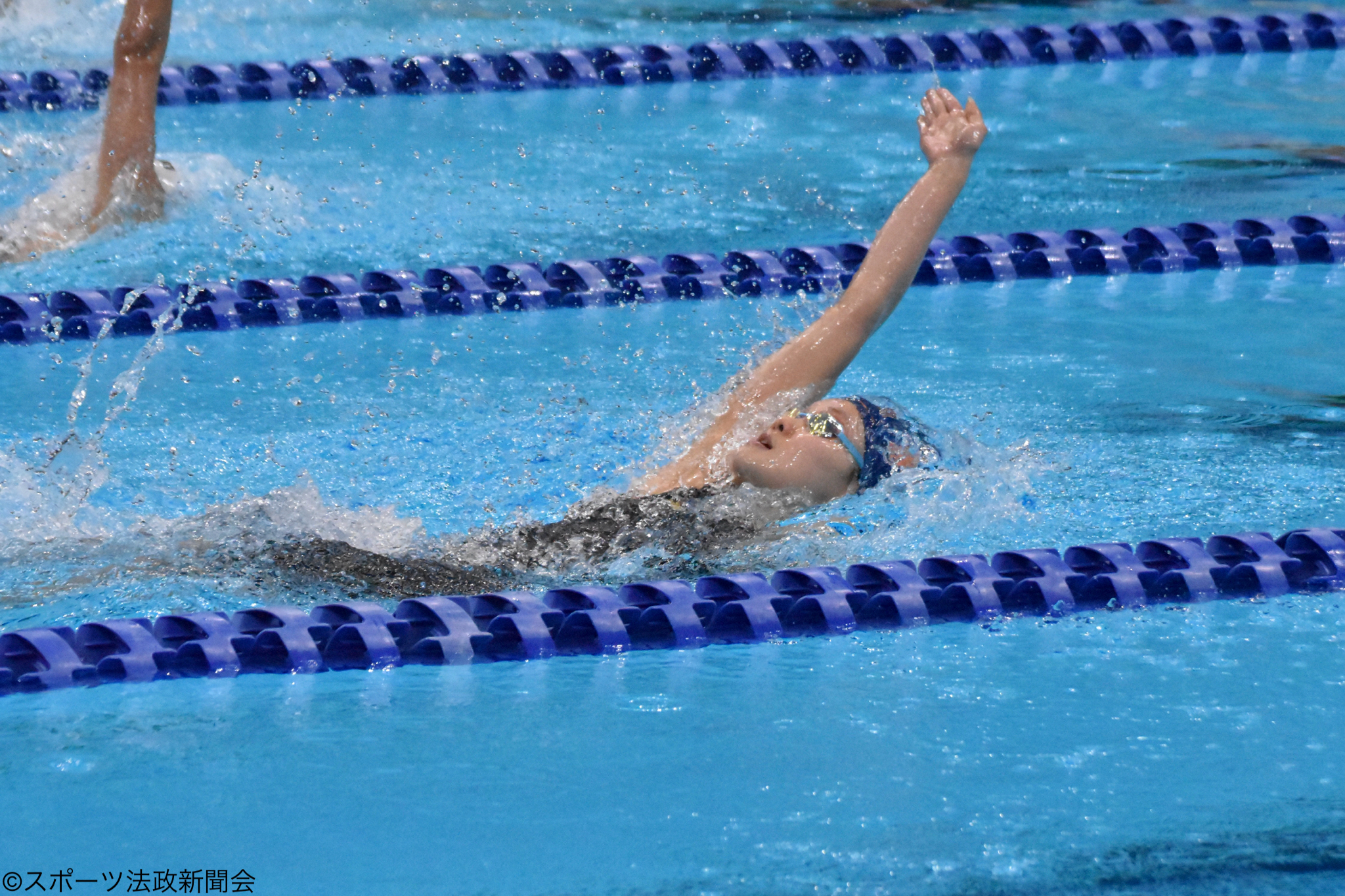 日本のトップスイマーが集う今大会。アジア大会代表選考会を兼ねた日本選手権が19日に開幕し、初日から熱戦が繰り広げられた。法大からは9名の選手が出場。100m背泳ぎでは中谷悠空(経3)がベスト更新するなど好成績を収めた。さらに、100m背泳ぎの伊藤ななみ(社2)をはじめ、計4名の選手が決勝に駒を進め、チームとしての実力の高さを印象付けた。代表選考という厳しい舞台において好スタートを切ったチームは、今後の種目でも上位進出、さらにはアジア大会代表入りへ向けて期待が高まる。