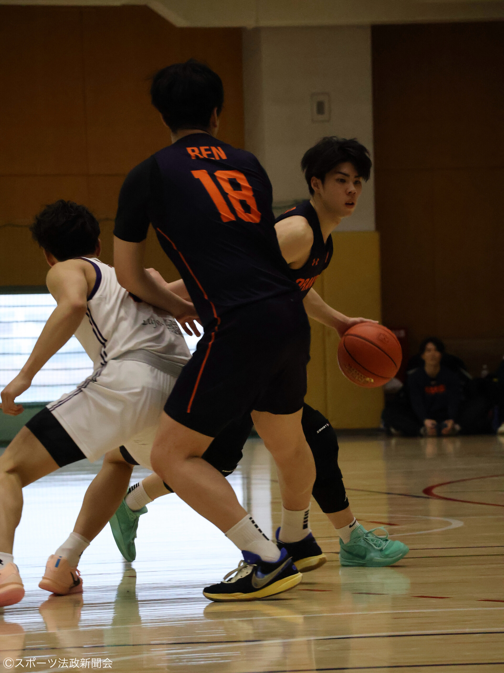明大ディフェンス相手にドライブで果敢に攻めたPG野田