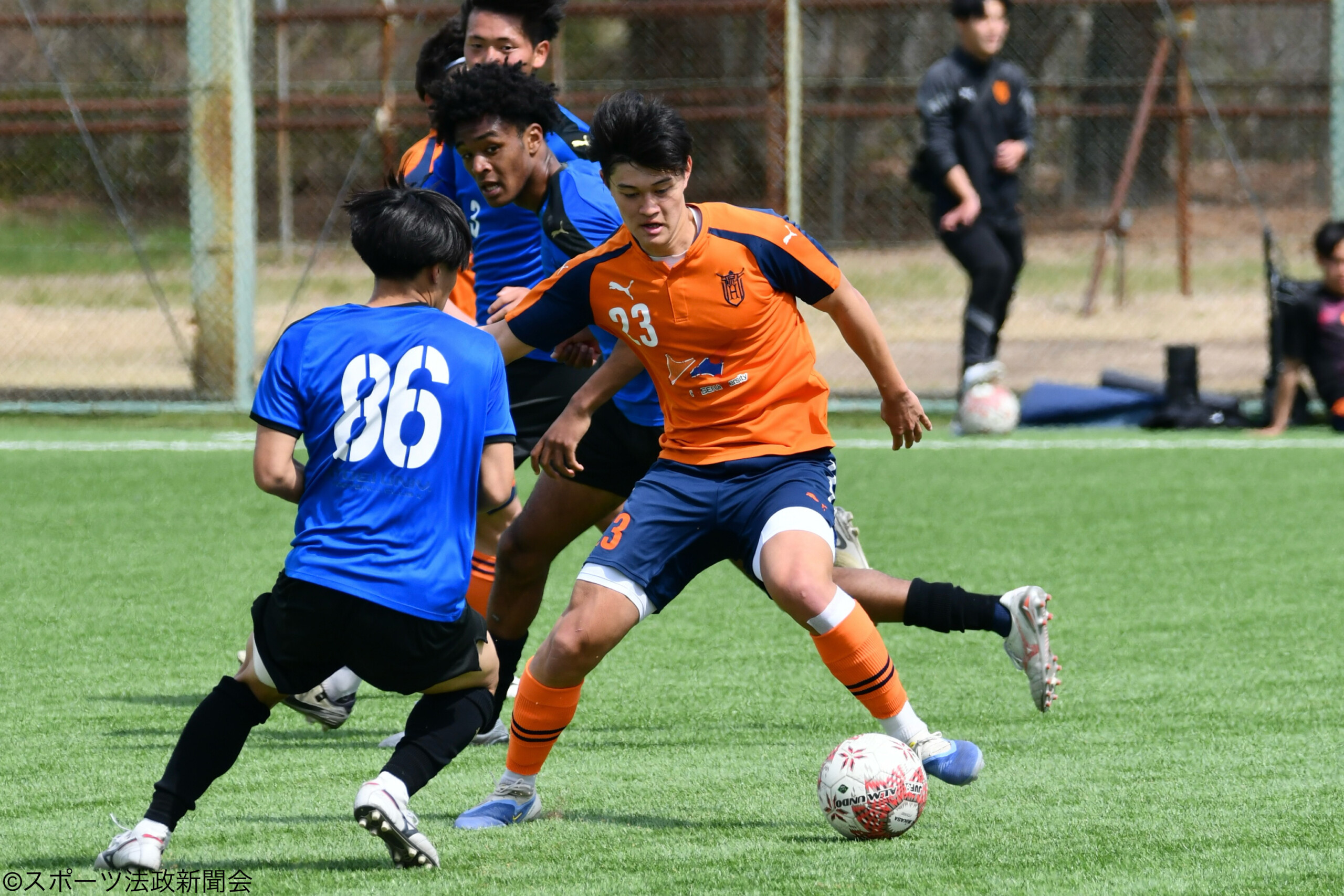 目標にしている選手が上田綺世選手で、それになりたいっていうので法政を選んだのと、少人数制で1年生からでも試合に絡めるかなと思って選びました。