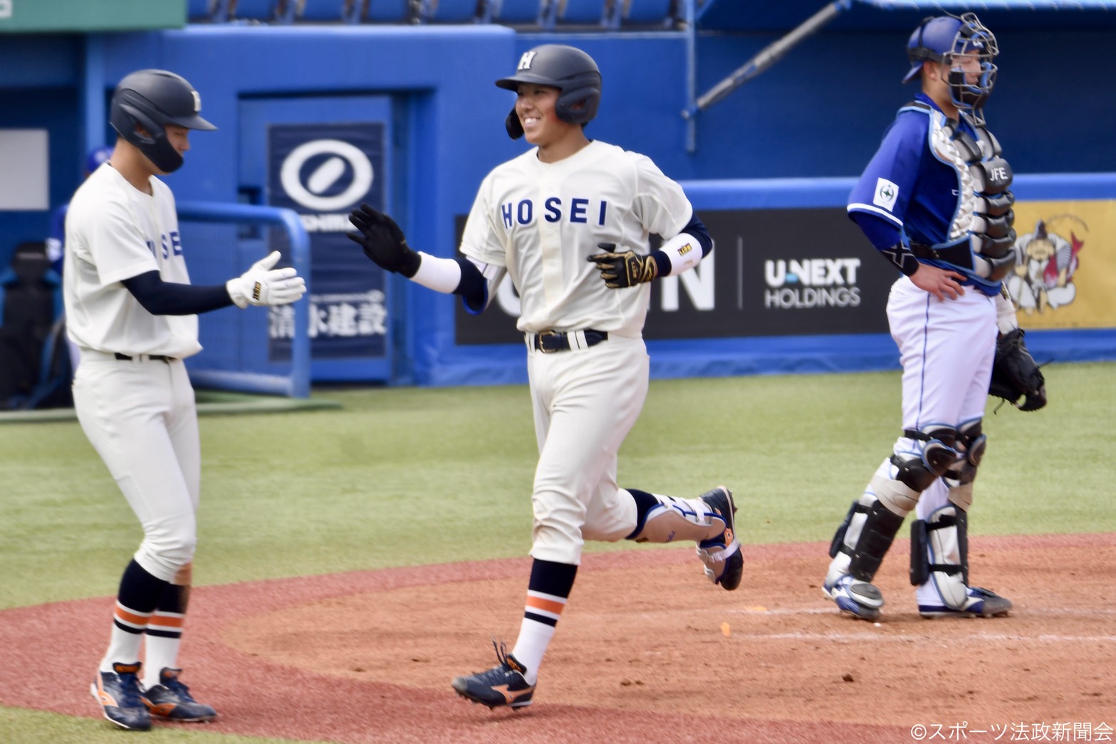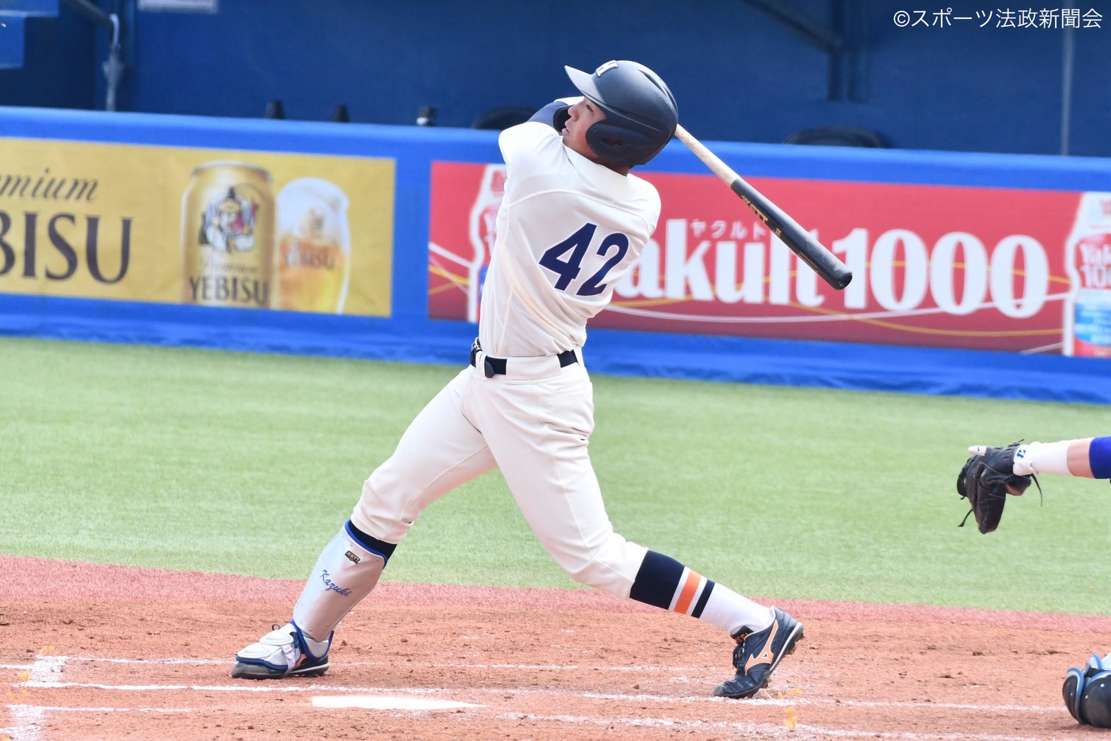 突き放したい法大は直後の攻撃、2死から片山悠が中前打で出塁。続く金谷が左中間への二塁打を放つと、相手外野手の処理の間に片山が生還し、貴重な追加点を挙げた。