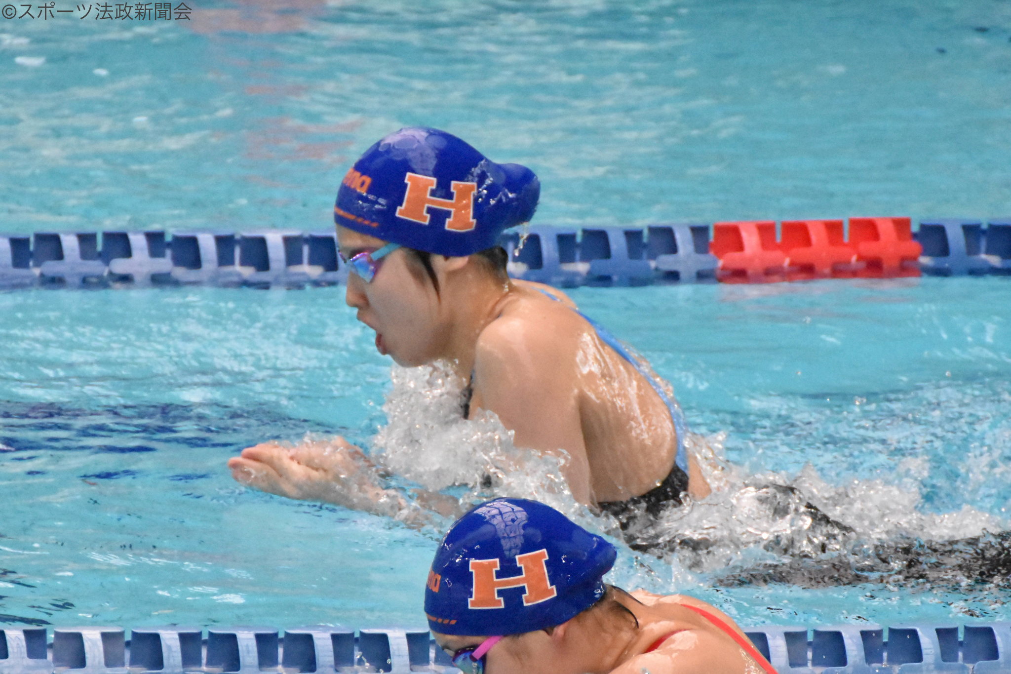 新入生を迎え、新体制となった法大水泳部にとって、今大会は始動後初の大学対抗戦。前回大会で女子総合優勝を果たした法大には2連覇の期待がかかった。