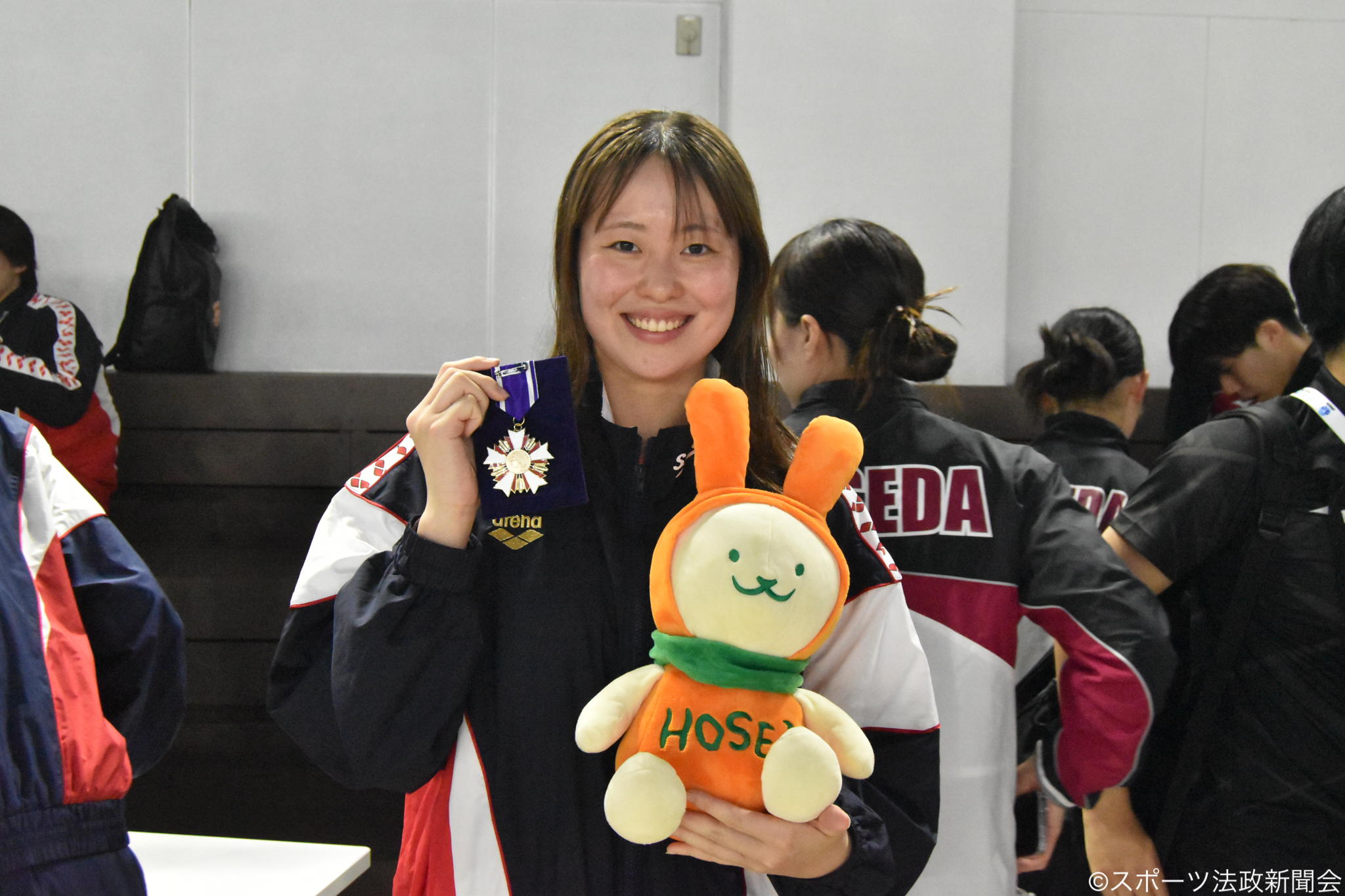 六大学対抗戦で優秀選手賞を獲ることは初めてだったので、すごく嬉しかったです。課題は、個人を少し流して泳いだというか、リレーに備えたレースをしてしまったので、個人もベストを狙えるぐらい頑張って、リレーも頑張れるようなタフな選手になりたいです。